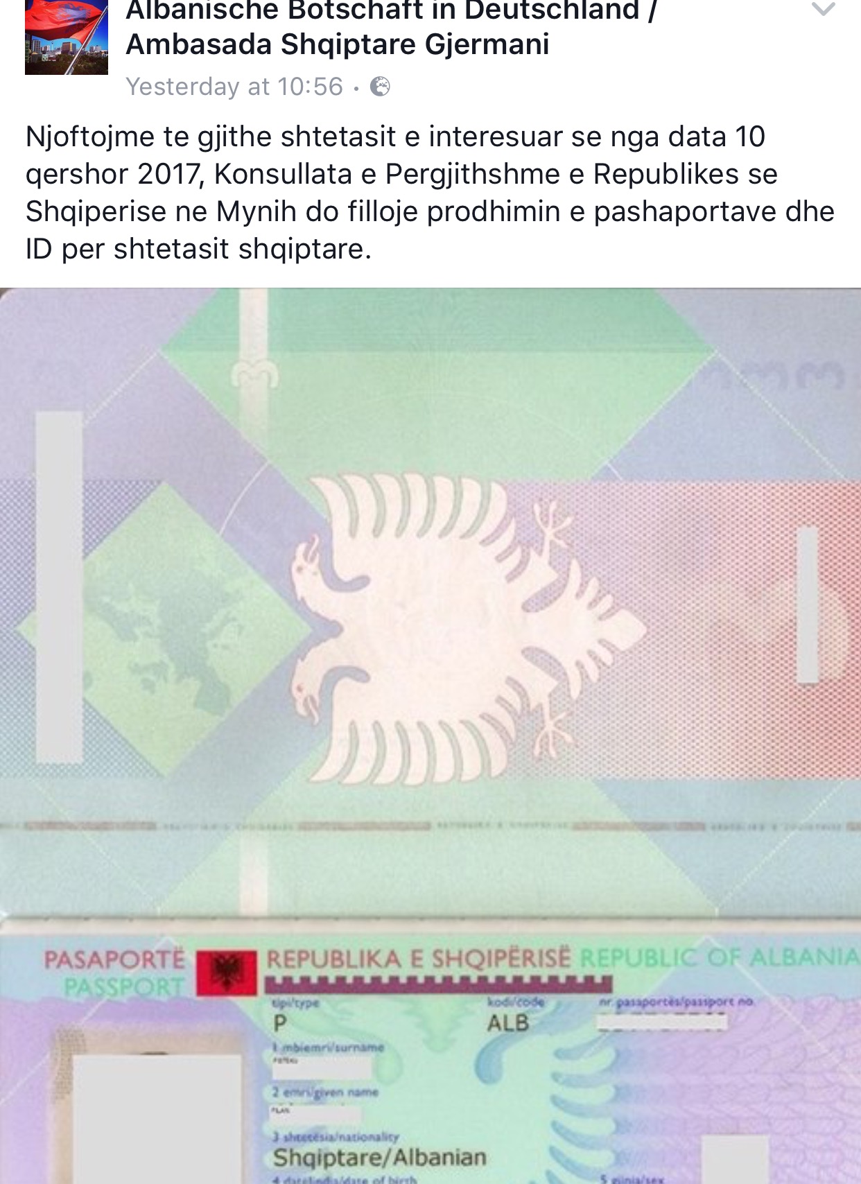 Ambasada shqiptare në Gjermani ka reaguar mbas denoncimeve të vazhdueshme të bëra nga qytetarë të ndryshëm që jetojnë në Gjermani të cilët ankoheshin për pamundësinë për tu pajisur me pashaporta pranë kësaj ambasade. Ajo ka lajmëruaj dje në faqen e saj se nga 10 qershori edhe kjo ambasadë do të mundësojë pajisjen me pashaporta të shqiptarëve duke u kursyer atyre para dhe kohë. Më parë ambasada u thoshte qytetarëve se për të marrë pashaportën duhet të shkonin në Bruksel apo Milano.