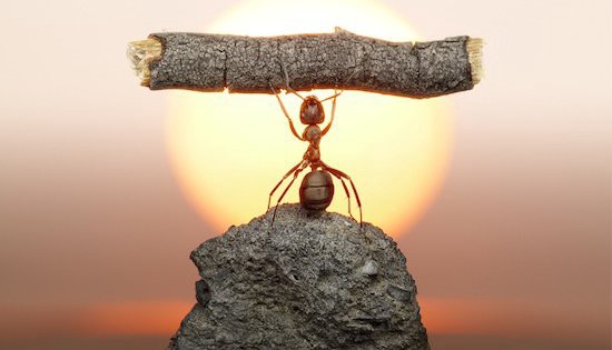Si çdo ditë në mëngjes, milingona u nis të bëjë punën e saj gjithë energji dhe optimizëm. Ajo ia dilte mbanë të realizojë shumë gjëra gjatë ditës. Një ditë, luani e vuri re milingonën teksa e kryente punën me sinqeritet dhe përkushtim, pa pasur nevojë që dikush t’i qëndrojë tek koka.